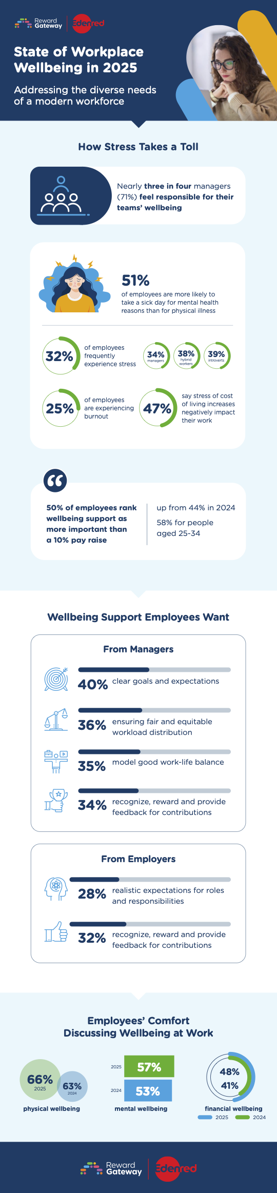 Reward Gateway | Edenred's Workplace Wellbeing in 2025 report dives into the state of employee wellbeing in the U.S., alongside what employees are looking for from their employers and their managers.