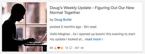 Here’s an example of how our CEO, Doug Butler, uses our employee engagement platform to communicate with our people about what the 'new normal' will look like.