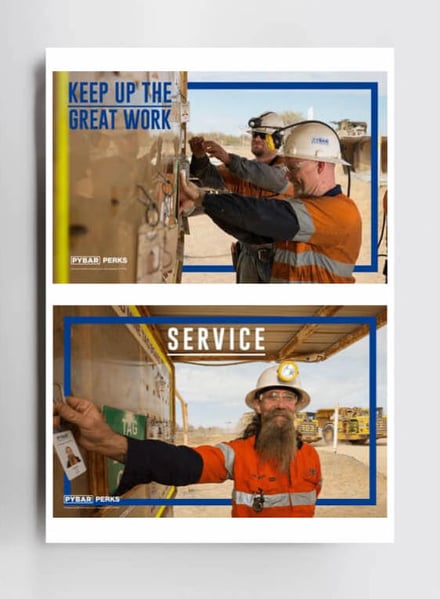 PYBAR Mining Services, a company with over 800 employees, revived their recognition and reward experience. In addition to celebrating annual service milestones, they introduced peer-to-peer eCards called “High 5 a Mate.” They can send each other eCards based on their five values - of which Safety is one.