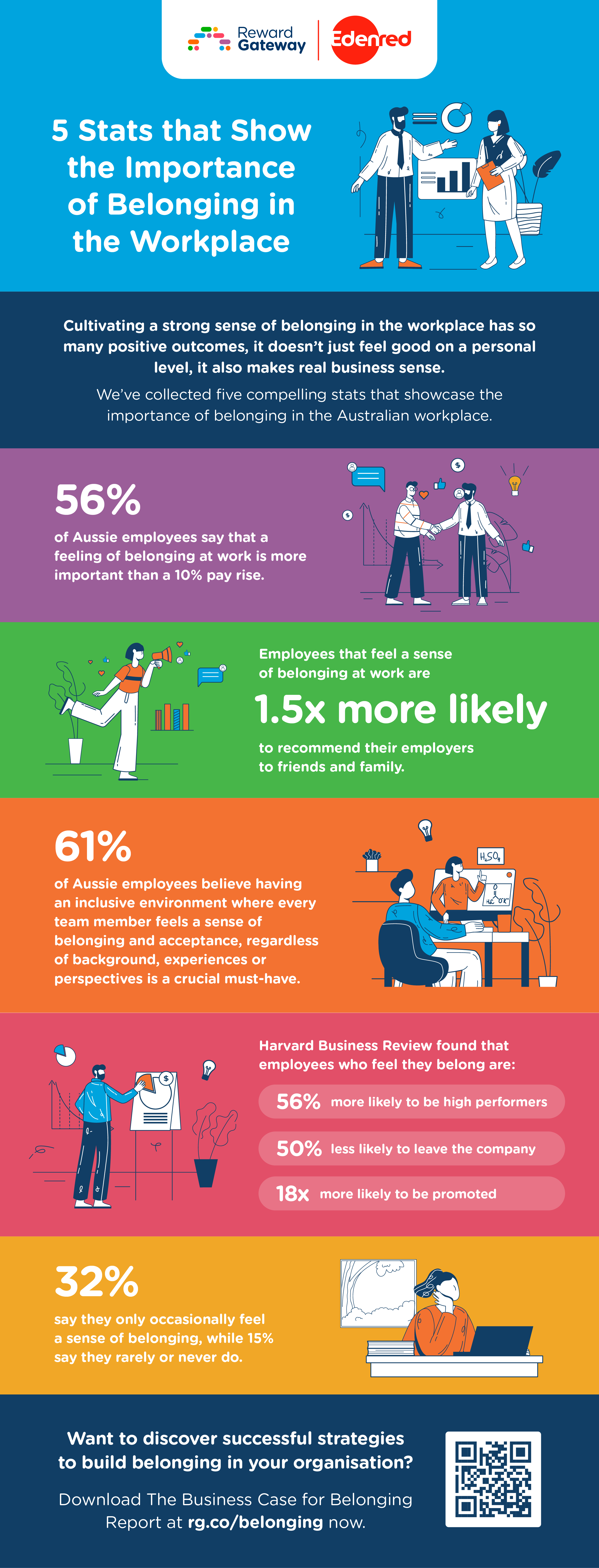 We found that over half of Australian employees believe that a feeling of belonging at work is more important than a 10% pay rise, demonstrating the significant importance employees place on belonging.