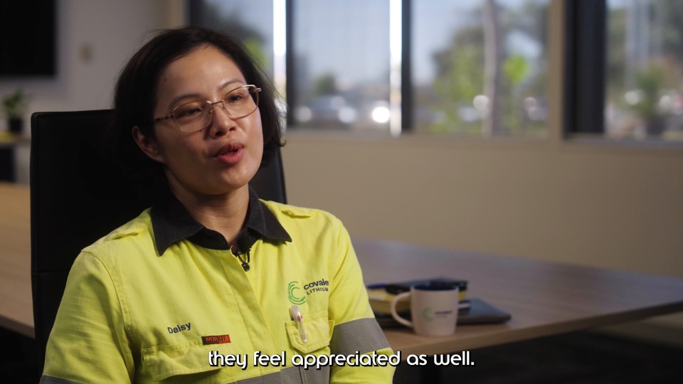 "In my role in Health and Safety, when we go out there, we are trying to identify defects so we can fix them. But what LiFT is doing is that we are trying to identify the positives as well. So it's definitely the direction of the culture that we want, when you're working with someone, we want to see the positives." - Daisy Tristanto, Health & Safety Superintendent, Covalent Lithium
