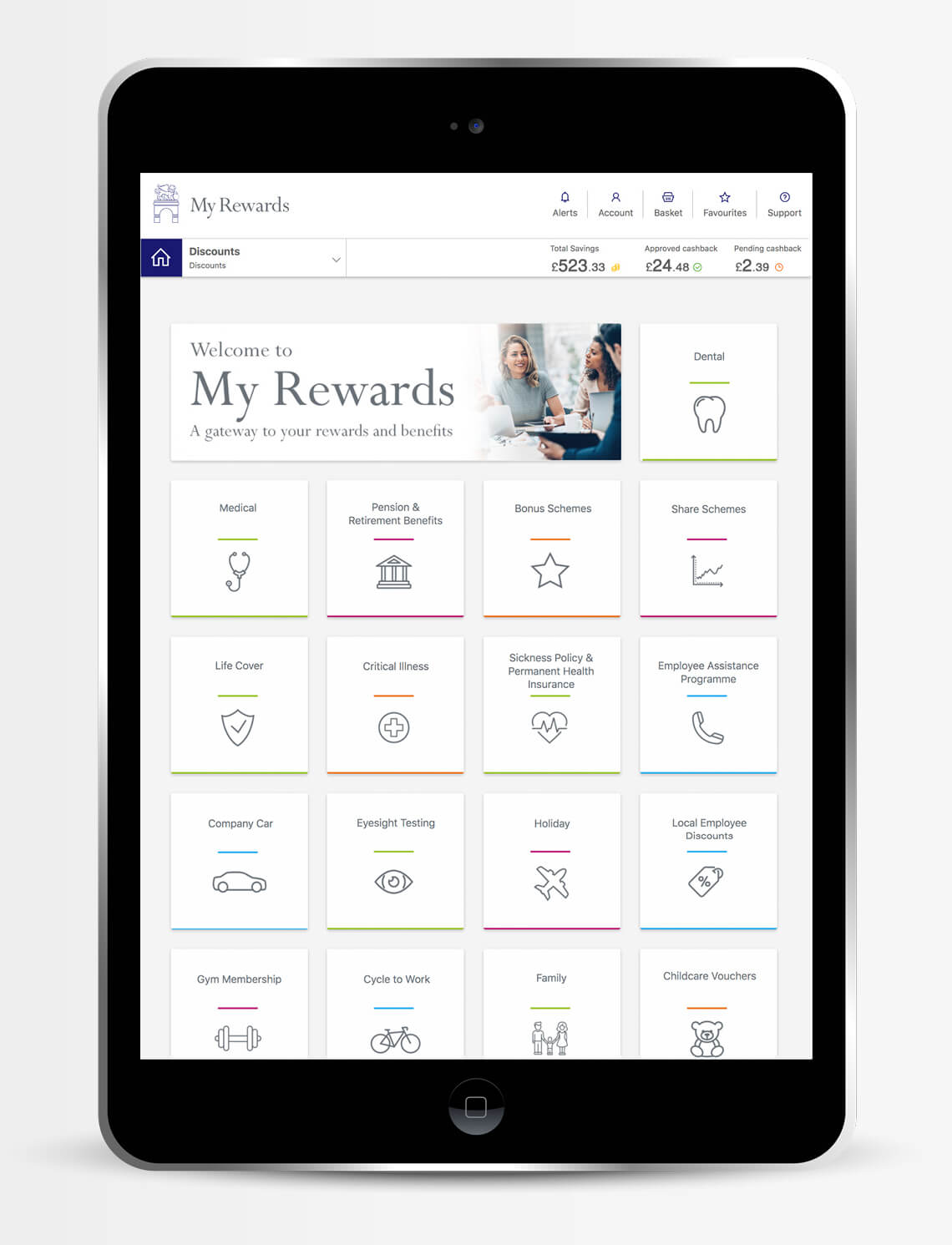 The team’s vision was to bring all rewards into one central hub that could be accessed on all devices, both in and out of the office. Previous communications around rewards had been all over the place – scattered across the intranet, printed out and pinned up in cupboards or available from HR upon request.
