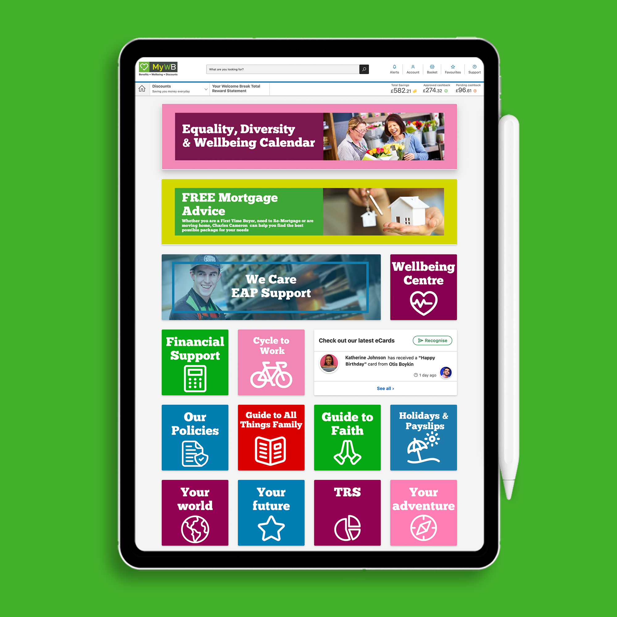 Working with Reward Gateway, Welcome Break rebranded its engagement hub, My Welcome Break, to simplify the logo and content to show that the site was about capturing hearts and minds of their people through helping them make their pay go further and providing extra benefits to make life easier.