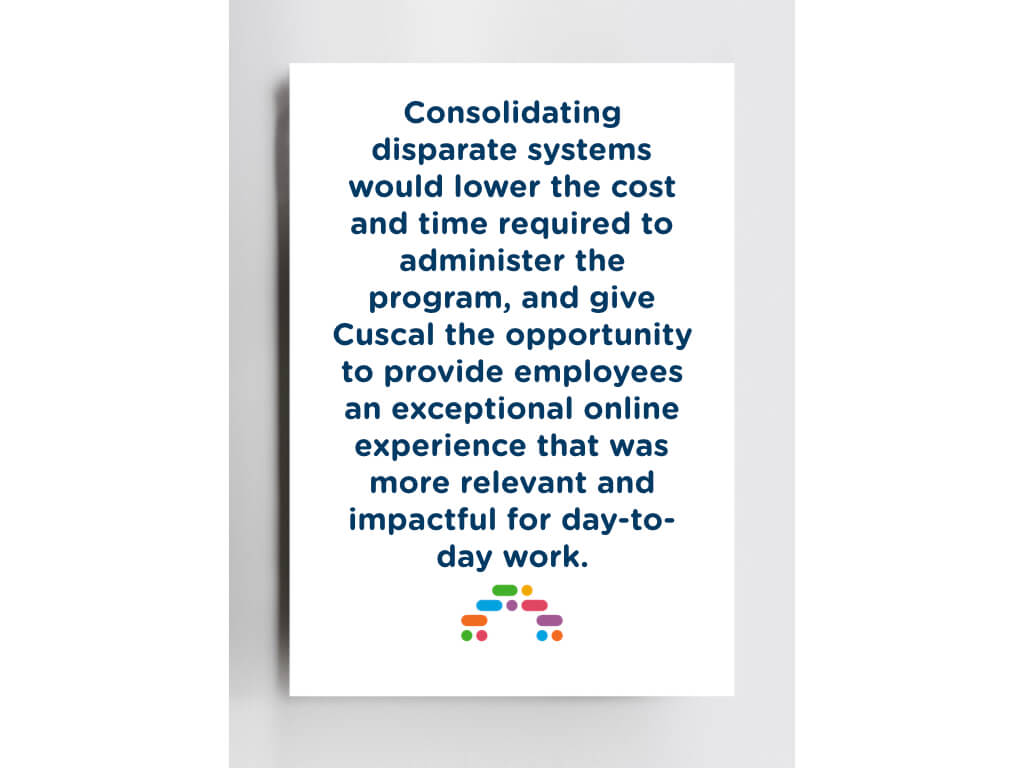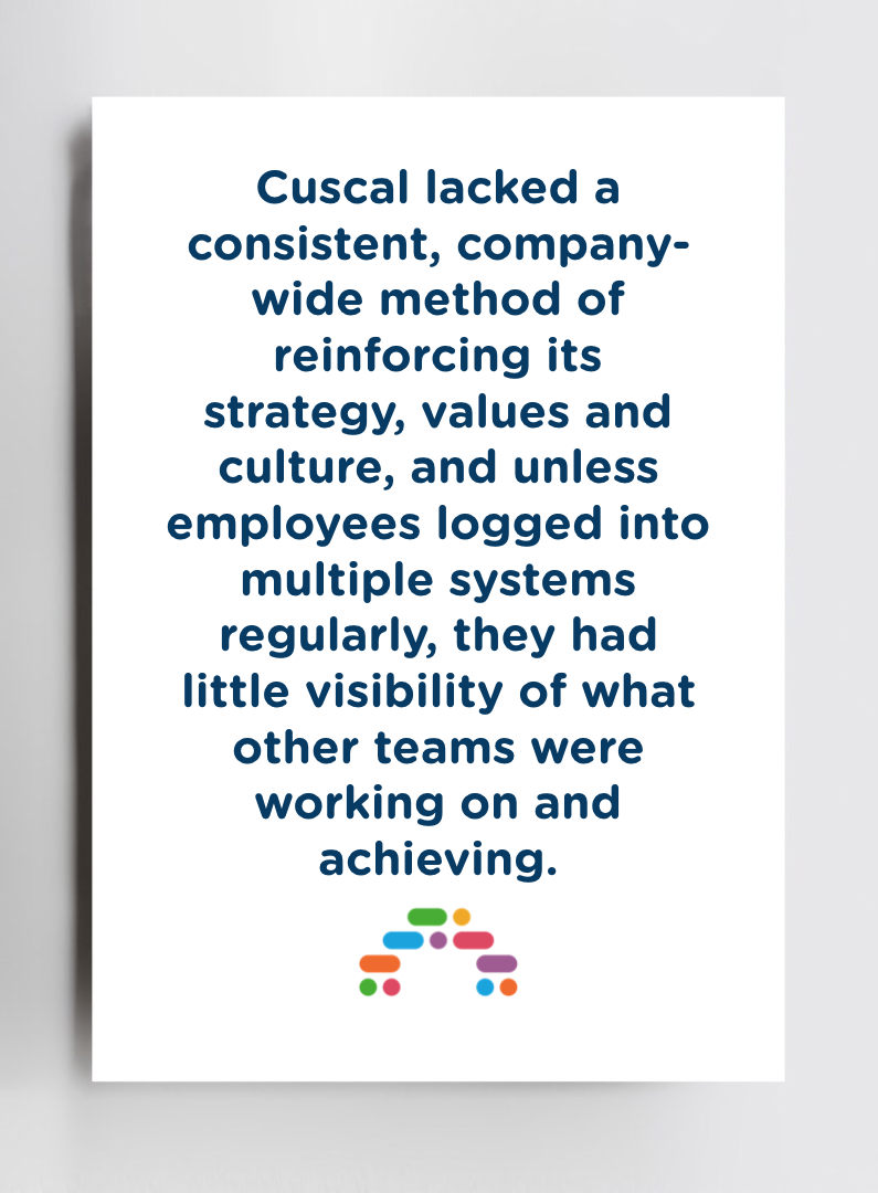 Over the last decade, Australia’s financial services industry has experienced major disruption and change, and Cuscal's headcount has increased and the pace of the company shifted to adapt to market changes. As the company continues to mature and its strategy increases focus on digital products and innovation, its leaders know it is critical to provide employees with the tools and support to improve communication and collaboration. This includes revisiting and refreshing existing programs and consolidating the number of platforms employees need to log into in order to achieve their best work, everyday.