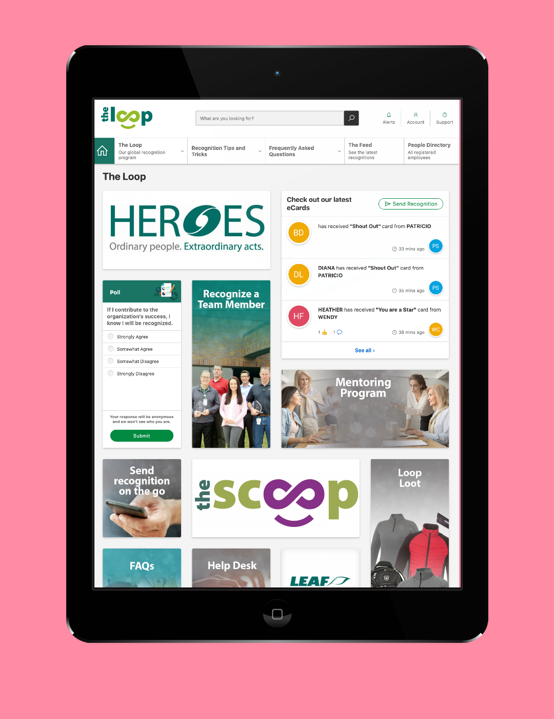 Sheri Treu, Director of Organisational Development at ORBIS Corporation says, “We had a paper process before, so our reward and recognition programs were very manual and hard to track. Our people were demonstrating the LEAF behaviours, but there wasn’t a way to publicise it before so we needed to modernise our approach to employee recognition. Through our platform, The Loop, we've been able to offer a place for people to go to.”
