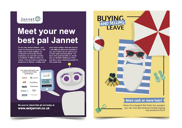 One of the main goals when launching the platform was to connect employees across all departments and support the day-to-day culture that is an essential part of PCH. Tapping into their local roots, the team decided to name the platform "Jannet," which plays on "Janner," the regional nickname for people from Plymouth and something every employee at PCH could relate to. Jannet has even taken on a life of her own, as the company has used her image in targeted campaigns to get employees excited about using the platform.