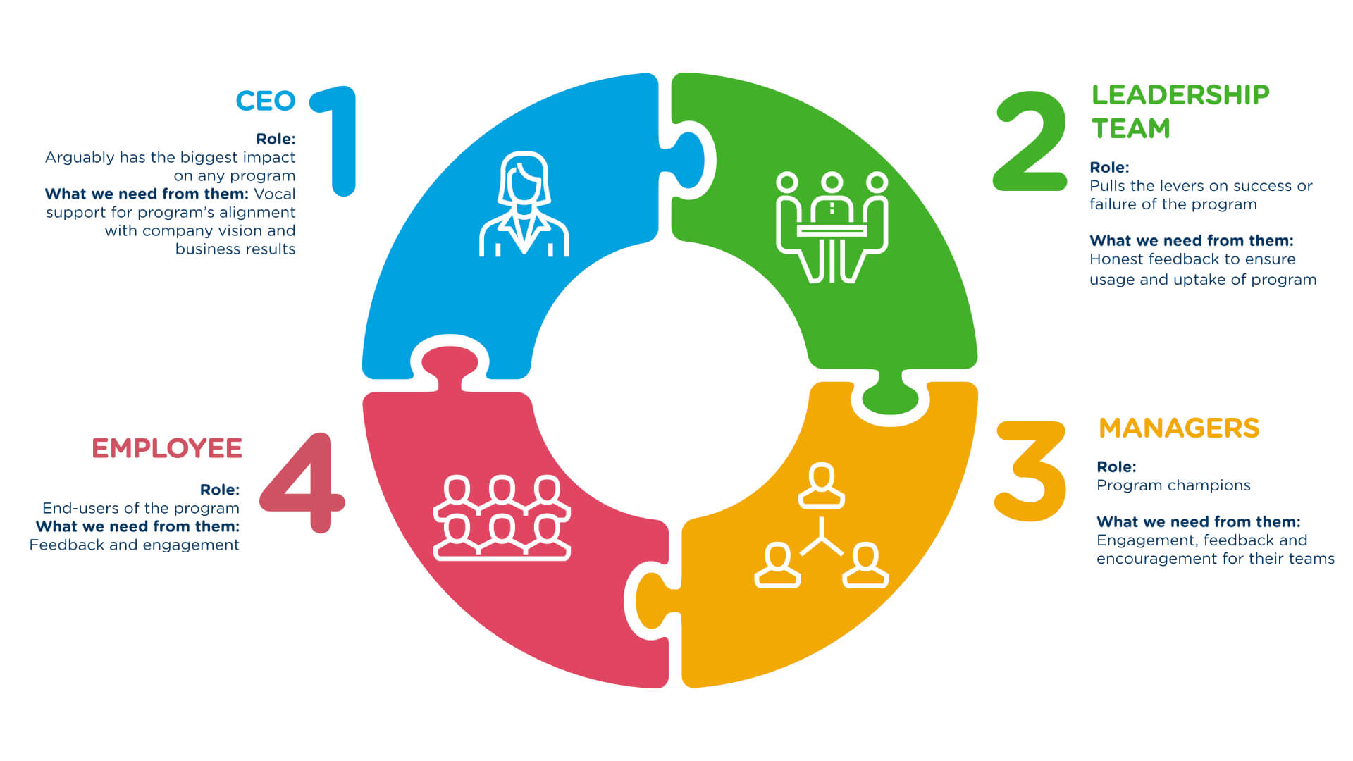 The CEO: The leader of the business, the figurehead, the person with the single biggest impact on any program, especially the employee engagement one. We need them to lead and support what is being delivered, but we also need their honest voice to make sure it aligns to their vision for the business.