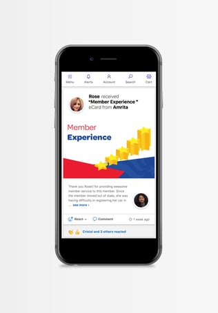 Improving reward and recognition meant revisiting its current offerings and giving employees a refreshed R&R experience. On The Hub, employees can send one another both performance-based eCards, including “Member Experience” and “Teamwork,” along with greetings-based eCards to wish others a happy birthday or congratulate them on their work anniversary.