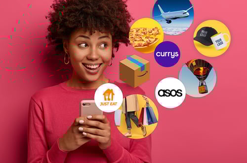Add swag alongside e-gift cards, Amazon items, charitable giving and custom rewards