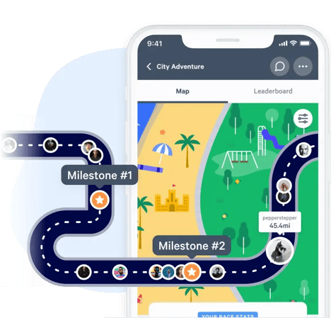 Step as a group, compete as individuals or as teams in a virtual, long distance race. Participants can track progress in real time through a racetrack and experience fun surprises and milestones along the way!