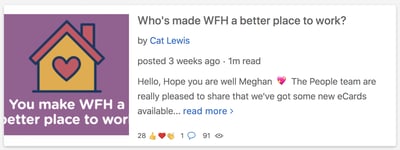 While our readership levels varied week-by-week pre-COVID-19, the last month has seen more than a 35% increase in readership across our blogs compared to this time last year. Our clients have also felt the impact of internal communications with a 560% increase in unique blog views from this time last year. Part of this was due to our Client Success Team hard at work building more than 500 coronavirus-related hubs and individual pages, similar to the one Cat and her team initially created for Reward Gateway.