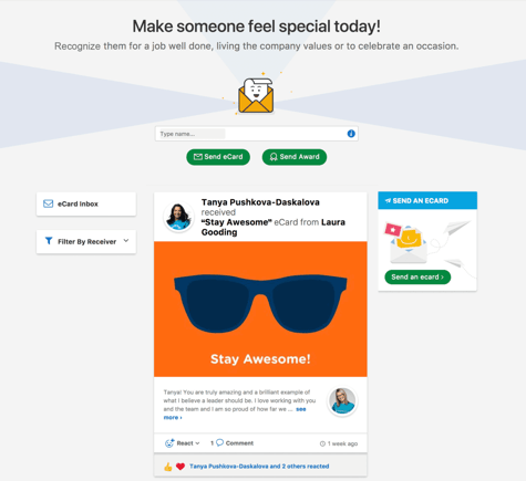 We make great use of our employee recognition platform which lets staff show their gratitude to their colleagues, creating a culture of continuous recognition and appreciation across the organisation.