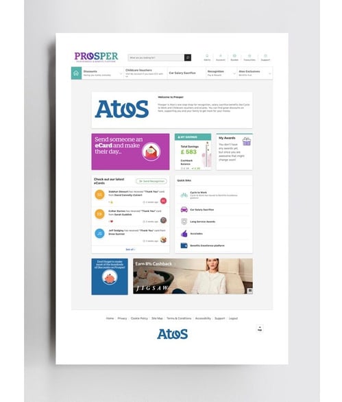 The diversity of their employee population had been a critical factor when designing and implementing new benefits. Success relies on the relevance of each benefit across the entire workforce and their ability to engage all employees regardless of location, status or access. Atos had many existing benefits in place, including private medical, life assurance, income protection, cars, will writing, charity giving, and a Tastecard. However, low engagement with these supported the implementation of a new benefits platform – one single place where employees can access their benefits at anytime. It was named Prosper.
