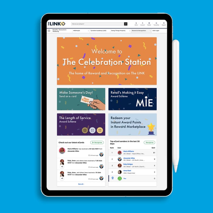 Alongside these personalised eCards from leadership, the business launched its “Making it Easy” awards, which are given to retail employees when they reach a certain level of transaction (a £1k, £2k or £3k sale), can be spent on The Link, and are visible for all employees to see, allowing people to comment on their colleagues’ success.
