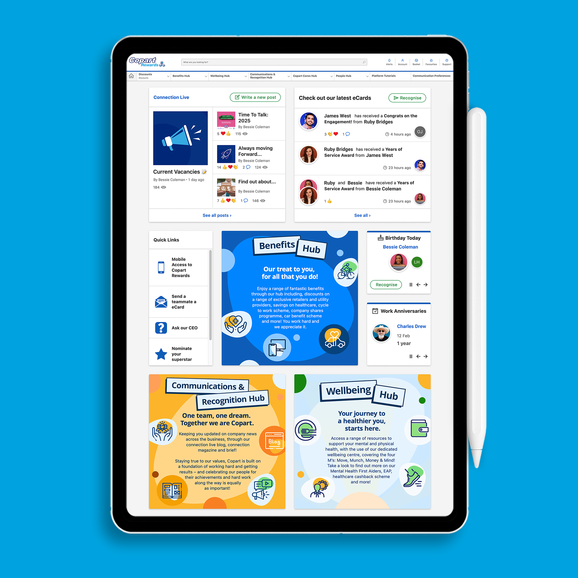 2025_Copart imagery eCards_UKAs a result, Copart Rewards was launched. The new platform effectively streamlined the process for Copart UK’s employees to access all of their benefits via segmented hubs. Individuals from right across the business were involved with the development of Copart Rewards, helping ensure the platform was as useful and engaging as possible.