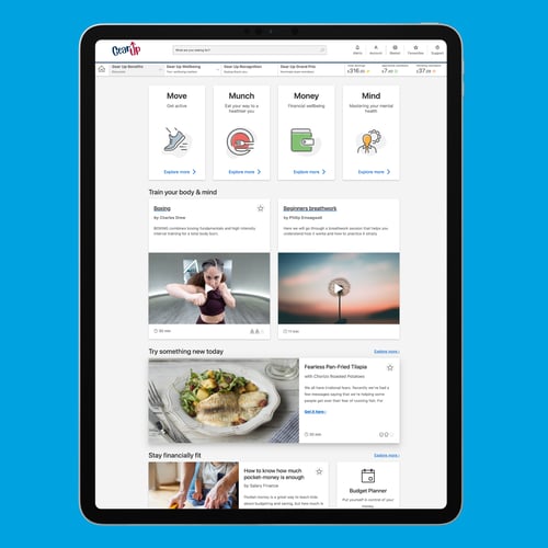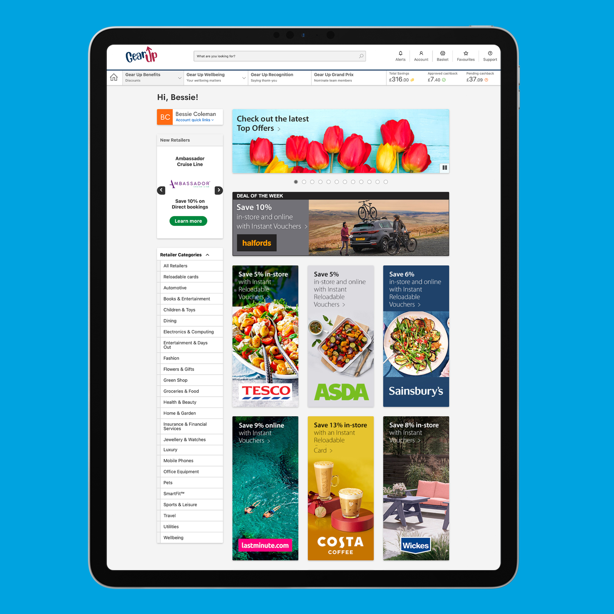 Via a single login, the new Gear Up branded portal provides employees with a one-stop-shop for employee benefits, discounts, rewards, a Wellbeing Centre and other benefits including pensions, as well as the company’s new recognition nomination scheme. With a user-friendly tile-based layout, employees can easily find what they’re looking for using their desktop, tablet or mobile apps.