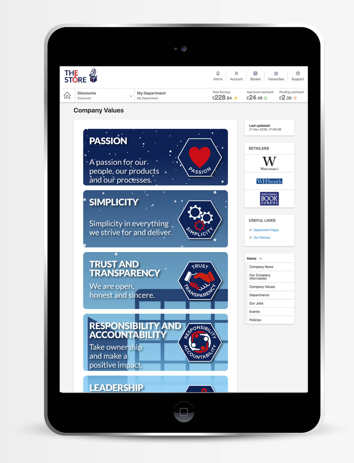 Working with Reward Gateway, the team developed a communications programme to promote The Store benefits platform, with key objectives of creating awareness and achieving high volumes of registrations. Following launch, the team needed to encourage engagement and maintain interest levels in the new platform, staff benefits scheme and key business documents store.