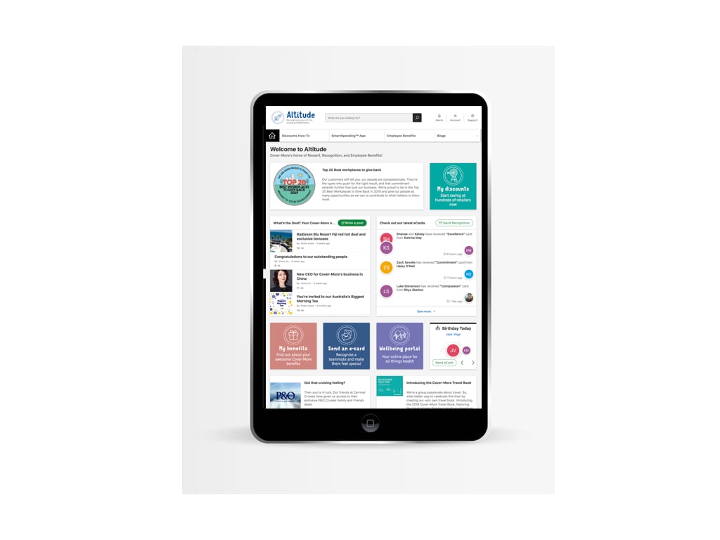 Cover-More launched a program called "Altitude", which gives employees the ability to send each other eCards any time to recognise those moments where they demonstrate the company’s five core values: Excellence, Commitment, Independence, Integrity and Compassion. It also provides employees access to discounts at hundreds of major retailers, giving employees the ability to save money daily and amplify their disposable income. The People and Culture team also publishes company news on Altitude, making it a one-stop-shop for the information, recognition and benefits that bring Cover-More’s fun, friendly and supportive culture to life.
