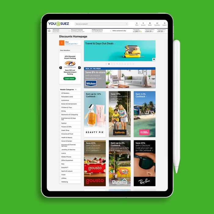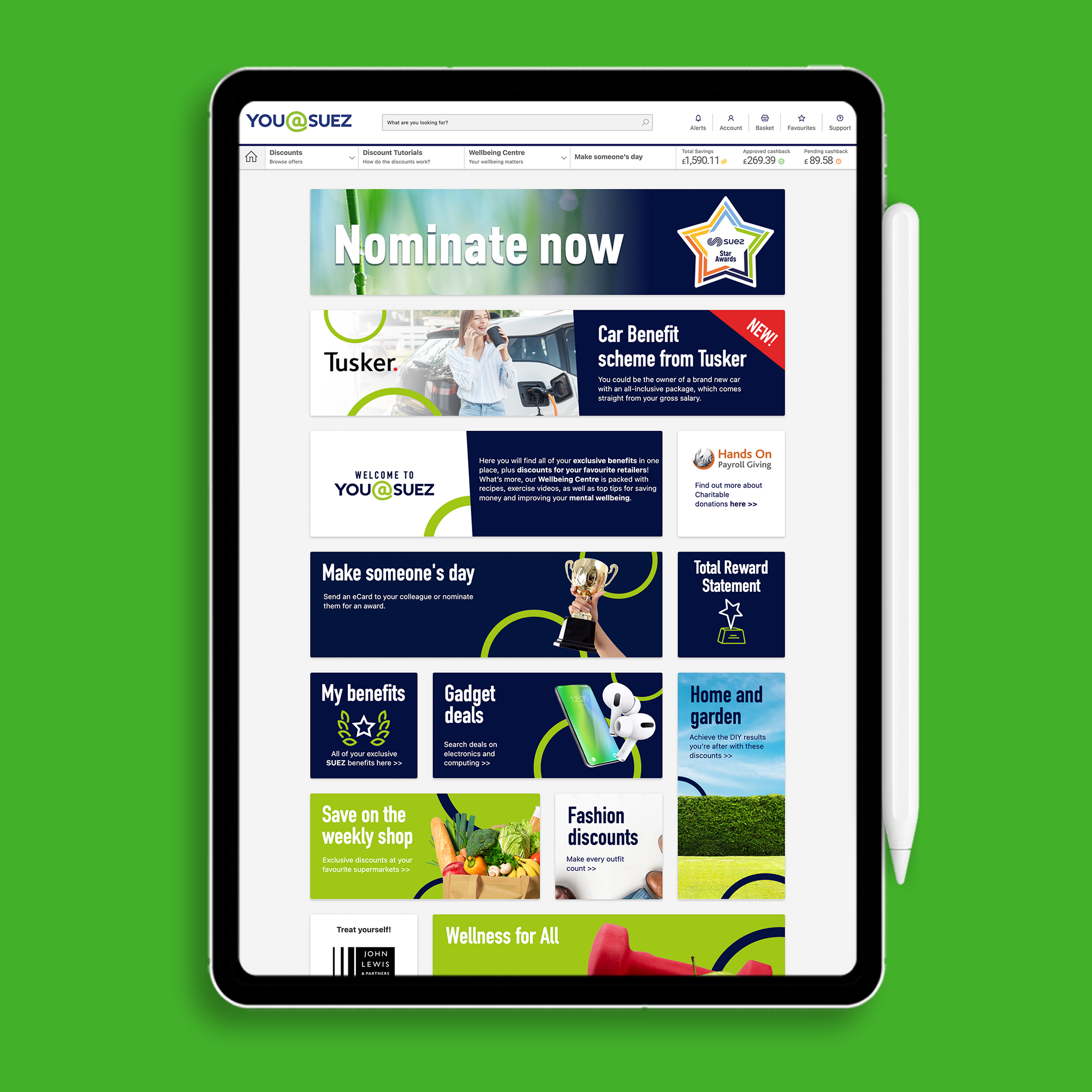Working with Reward Gateway, SUEZ put in place a new employee benefits platform called You@SUEZ in just eight weeks. With SUEZ branding, the platform brings employee benefits together in one place. It can be accessed through a single login and gives employees access to a broader, more comprehensive set of benefits.